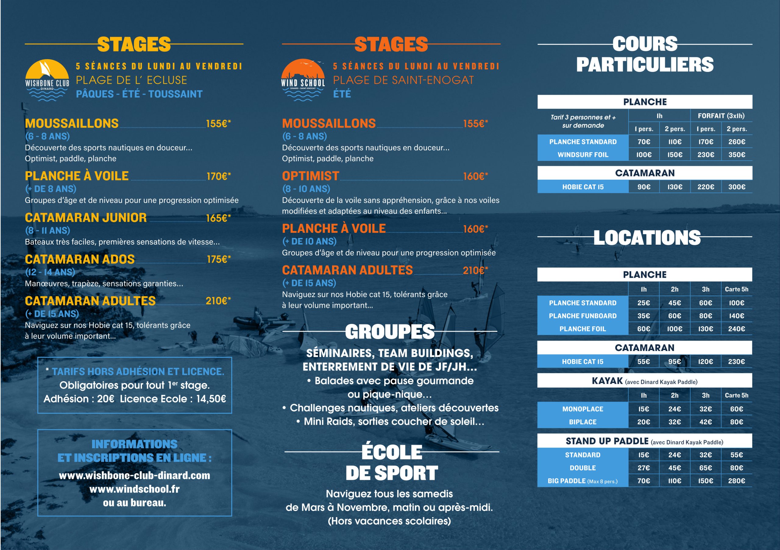 Tarifs école de voile